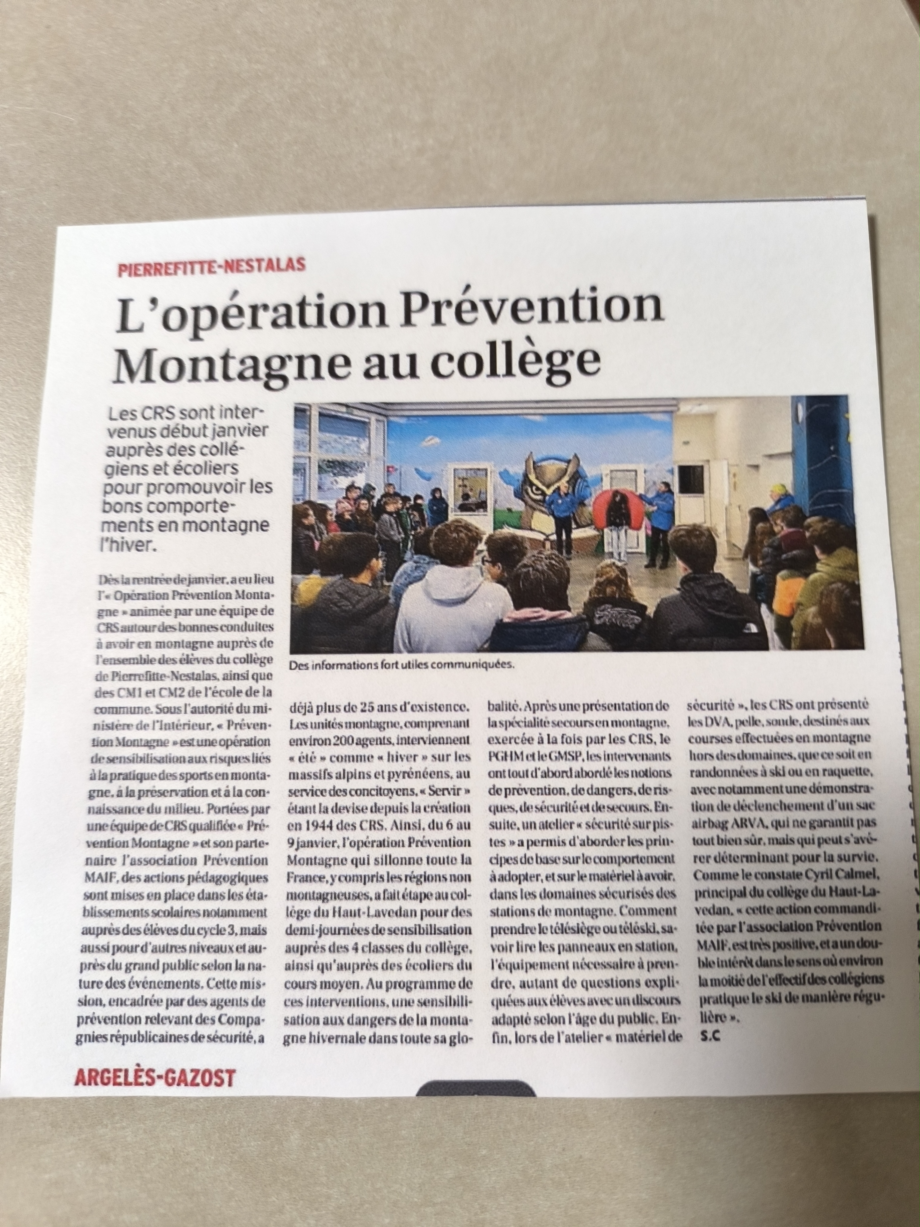 "Les élèves des quatre classes ont pu bénéficier d'une sensibilisation aux risques liés à la pratique d'une activité en montagne. Ces interventions de prévention sont d'autant plus intéressantes que beaucoup d'élèves sont eux-mêmes skieurs."